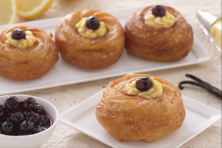 Подготовка: Сначала подготовьте заварной крем: разогреть молоко в кастрюле с половины бобов ванили и ее семян; взбейте в миске венчиком, яичным желтком и сахаром, затем добавить муку. С помощью плоскогубцев снимите ягоды и залить нагретое молоко на соединение провода, смешиваясь с венчиком. Доведите смесь обратно на тепло и постоянно помешивая, пока крем не загустеет. Передача заварной крем в миску и дайте ему остыть хранить его с листом пластика в контакте и дайте ему остыть. Теперь подготовим тесто пончиков: в с толстым дном кастрюля положить сливочное масло и залить водой, добавить соль и положить медленно до кипения, помешивая деревянной ложкой. После того, как масло растает и вода закипит, снимите кастрюлю с огня и влить в муку; вернуть кастрюлю на плиту и смешать ингредиенты с начала юркнуть, а затем продолжить помешивая деревянной ложкой, чтобы получить компактный мяч. Поверните смесь, пока она не будет формировать беловато пантиной на дно кастрюли (это займет около 10 минут). Выключите огонь и добавьте сахар, хорошо перемешайте, чтобы включить его в смесь, а затем вылейте смесь в миску и дайте остыть. После того, как тепло, передача тесто и добавить тертый лимонную цедру и яйца, по одному за раз, добавляя следующее только тогда, когда предыдущий был полностью поглощен (а также с деревянной ложкой, вы можете сделать это, используя кнуты венчиком или листа планеты). В конце концов вы получите гладкие и однородные решений на высоком пятна с лопатой или ковшом, образуют своего рода ленты, как жаргона. Передача смесь в мешке мало звездное сопла. Вырежьте квадраты пергаментной бумаги, имеющих сторон 8 см и выжать над каждый квадратный диск теста диаметром 5 дюймов, которые будут формировать движение по спирали. На внешнем крае каждого диска наложить кольцо пасты, чтобы образовать небольшую тарелку. Форма так около 7 других пончики или пока смесь не закончится. В кастрюле от верхнего края, положить масло для жарки, которые возникают при температуре от 160°С до 170°С: масло не должно быть кипения, жарки следует осторожно позволяющий перевернуть пончики несколько раз из за него может привести к резкому равномерно. Когда нефть достигла оптимальной температуры, погрузите не более 1-2 пончики все еще привязаны к площади пергаментной бумаги, на котором стоят за спиной; бумага выйдет сам по себе через несколько секунд, а затем вы можете удалить его из масла с помощью суппорта кухня. Осторожно поверните пончики снова в горячем масле до полного коричневого цвета, затем откинуть на дуршлаг их шумовкой и поместите их в слив излишки масла на нескольких листах бумаги абсорбент кухне. Когда все пончики жарятся, выжать печенья сливки, переданы в мешок мало звездное с насадкой, в центре пончики. Украсить пончики черешня сироп, или засахаренные вишни на вершине пучок сливки, передать пончики на блюдо и подавать пончики жареные.